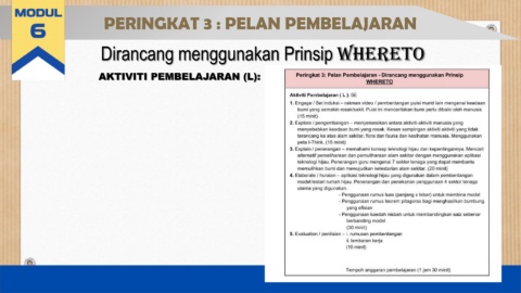 PERINGKAT 3 : PELAN PEMBELAJARAN Dirancang menggunakan Prinsip WHERETO AKTIVITI PEMBELAJARAN (L): 25
