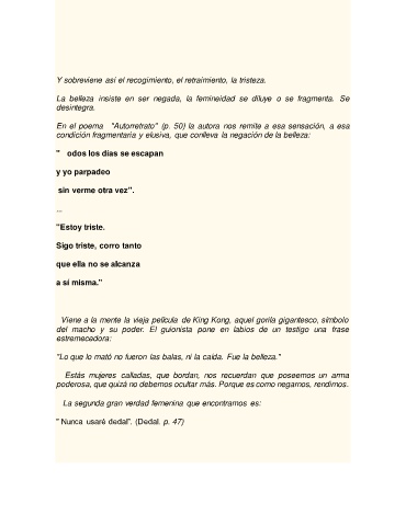 En el poema "Autorretrato" (p. 50) la autora nos remite a esa sensación, a esa
