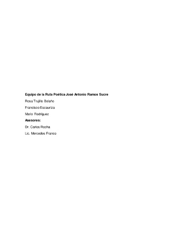 Equipo de la Ruta Poética José Antonio Ramos Sucre Rosa Trujillo Bolaño Francisco Escauriza Mario Rodríguez Asesores: Dr. Carlos Rocha Lic. Mercedes Franco