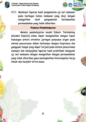 uji zat makanan dengan mengaitkan dengan permasalahan