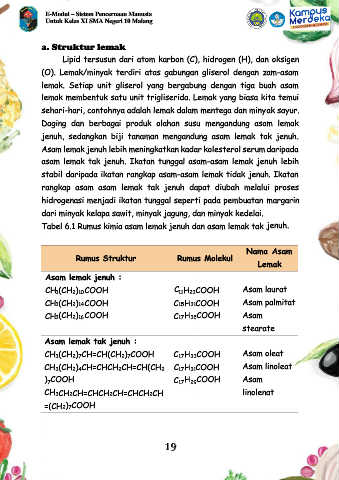 Tabel 6.1 Rumus kimia asam lemak jenuh dan asam lemak tak jenuh.