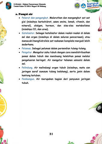 • Pelarut dan pengangkut. Melarutkan dan mengangkut zat zat