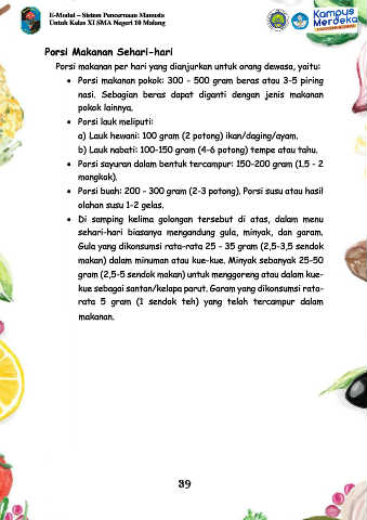 • Porsi makanan pokok: 300 - 500 gram beras atau 3-5 piring
