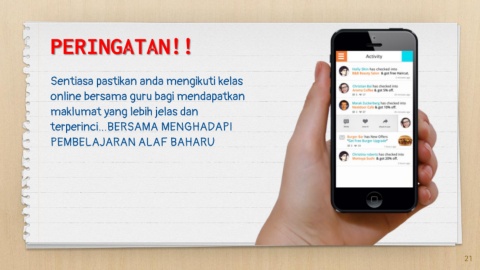 PERINGATAN!! Sentiasa pastikan anda mengikuti kelas online bersama guru bagi mendapatkan maklumat yang lebih jelas dan terperinci…BERSAMA MENGHADAPI PEMBELAJARAN ALAF BAHARU 21