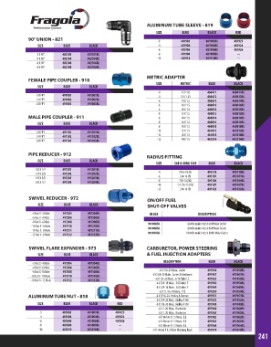 SIZE BLUE BLACK & FUEL INJECTION ADAPTERS