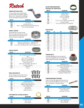 PART NO. DESCRIPTION PINION BEARING SPACERS