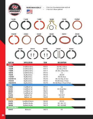 REAR MAIN SEALS • 1-Piece Seals: Fluroelastomer rubber shaft seal