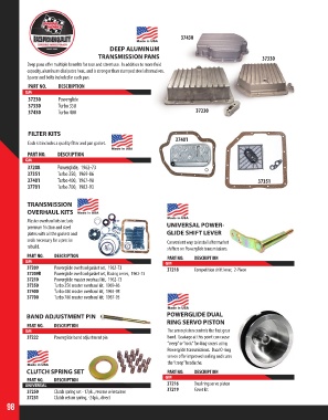 37209 Powerglide overhaul gasket set, 1962-73 37218 Competition shift lever, 2-Piece