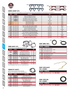 timing gasket sets PART NO. DESCRIPTION