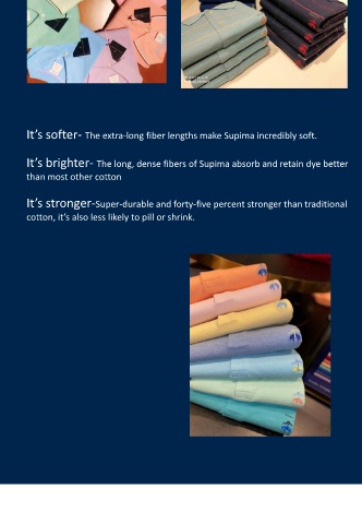 It’s brighter- The long, dense fibers of Supima absorb and retain dye better