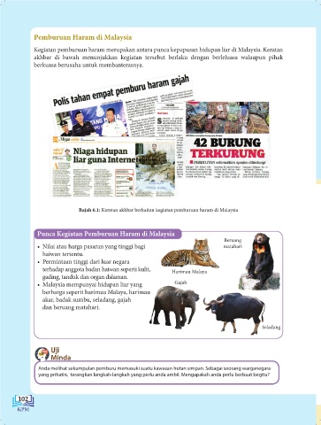 Rajah 6.1: Keratan akhbar berkaitan kegiatan pemburuan haram di Malaysia