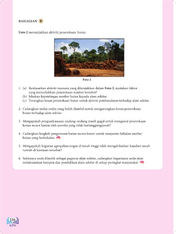 1. (a) Berdasarkan aktiviti manusia yang ditunjukkan dalam Foto 2, nyatakan faktor