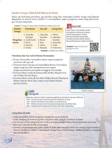 Jadual 7.1: Negara Utama dalam Pengeluaran Bahan Api Fosil Kod QR