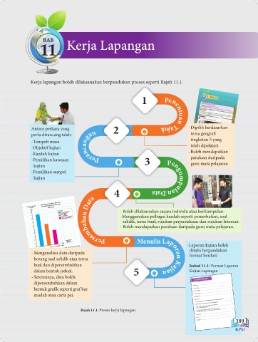 Kerja lapangan boleh dilaksanakan berpandukan proses seperti Rajah 11.1.