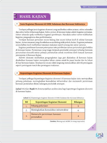 Jadual 11.2 Kepentingan Kegiatan Ekonomi di SMK Sulaiman dan Kawasan Sekitarnya