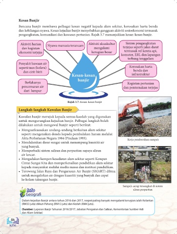pengangkutan, komunikasi dan kawasan pertanian. Rajah 3.7 menunjukkan kesan-kesan banjir.