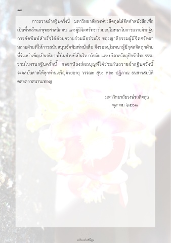 การถวายผ้ากฐินครั้งนี้ มหาวิทยาลัยวงษ์ชวลิตกุลได้จัดทำาหนังสือเพื่อ