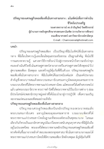 ปรัชญาของเศรษฐกิจพอเพียงที่เน้นทางสายกลาง : มโนทัศน์เพื่อการดำาเนิน