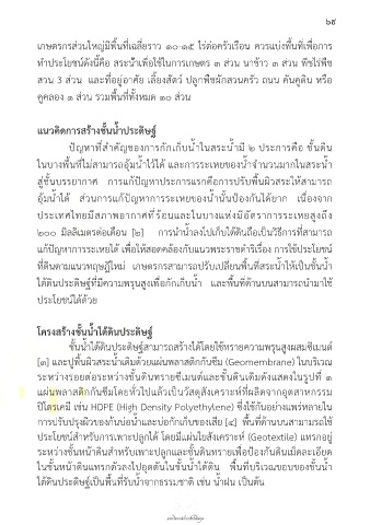[๓] และปูพื้นผิวสระนาเดิมด้วยแผ่นพลาสติกกันซึม (Geomembrane) ในบริเวณ