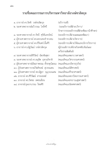 รายชื่อคณะกรรมการบริหารมหาวิทยาลัยวงษ์ชวลิตกุล