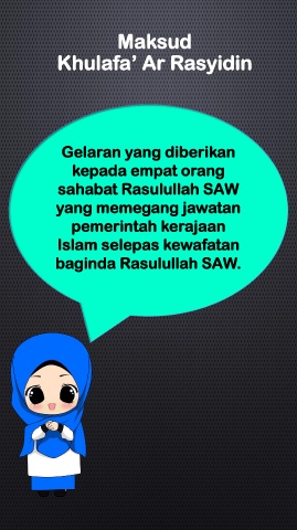 Maksud Khulafa’ Ar Rasyidin Gelaran yang diberikan kepada empat orang sahabat Rasulullah SAW yang memegang jawatan pemerintah kerajaan Islam selepas kewafatan baginda Rasulullah SAW.
