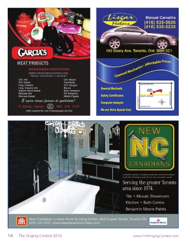 Licensed Mechanics • Affordable Prices 14 The Singing Contest 2019 www.TheSingingContest.com