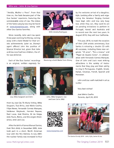 Each of the Duo Santos’ recordings Receiving a Gold Medal from Disney One of John and Lisa’s most striking