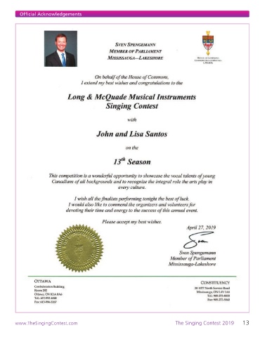 Official Acknowledgements www.TheSingingContest.com The Singing Contest 2019 13
