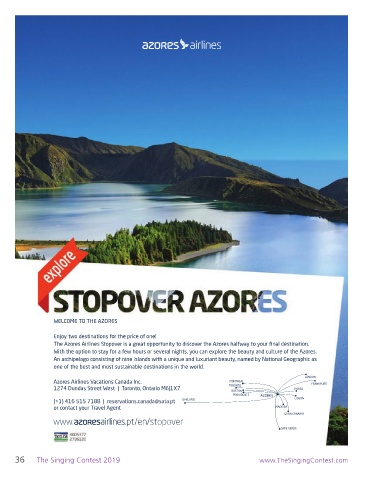 The Azores Airlines Stopover is a great opportunity to discover the Azores halfway to your nal destination.