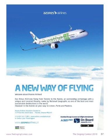 Our Airbus A321neo ying from Toronto to the Azores, an outstanding archipelago with a
