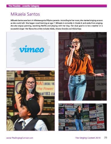 as she could talk. She began vocal training at age 7. Mikaela is currently in Grade 8 and aside from singing,