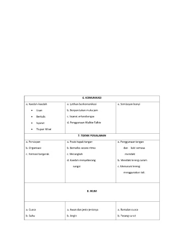 a. Kaedah-kaedah a. Latihan berkomunikasi a. Semboyan bunyi