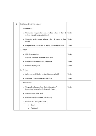 Membantu menguruskan perkhemahan selama 2 hari 1 Tarikh: