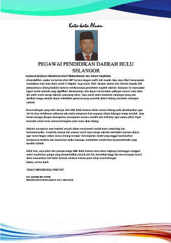 menitipkan kata-kata aluan untuk E-Majalah bagi tahun 2020. Ucapan syabas dan tahniah kepada Ahli