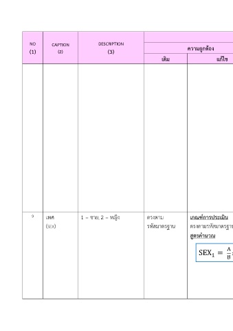 9 เพศ 1 = ชาย, 2 = หญิง ตรงตาม เกณฑการประเมิน รหัสมาตรฐานและ เกณฑการประเมิน
