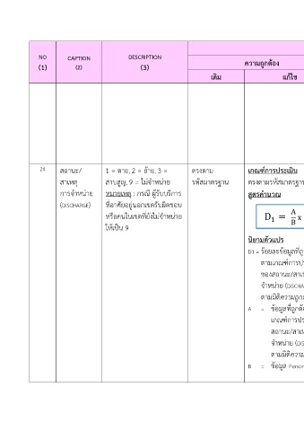 24 สถานะ/ 1 = ตาย, 2 = ยาย, 3 = ตรงตาม เกณฑการประเมิน กรณีสถานะเปน เกณฑการประเมิน