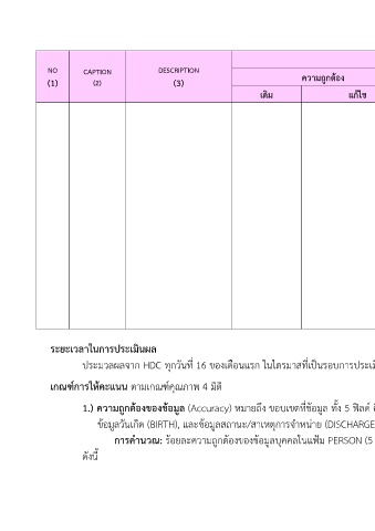 1.) ความถกตองของขอมูล (Accuracy) หมายถง ขอบเขตที่ขอมูล ทั้ง 5 ฟลด คอขอมูลเลขประจำตัวประชาชน (CID), ขอมลเพศ (SEX), ขอมูลสัญชาติ (NATION),