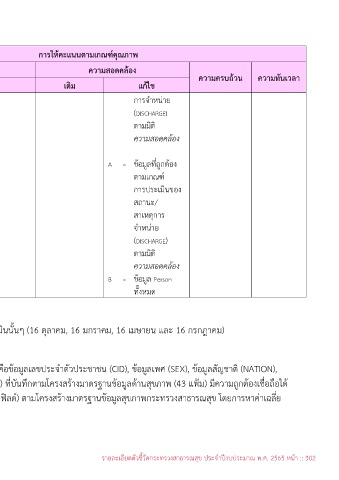 1.) ความถกตองของขอมูล (Accuracy) หมายถง ขอบเขตที่ขอมูล ทั้ง 5 ฟลด คอขอมูลเลขประจำตัวประชาชน (CID), ขอมลเพศ (SEX), ขอมูลสัญชาติ (NATION),