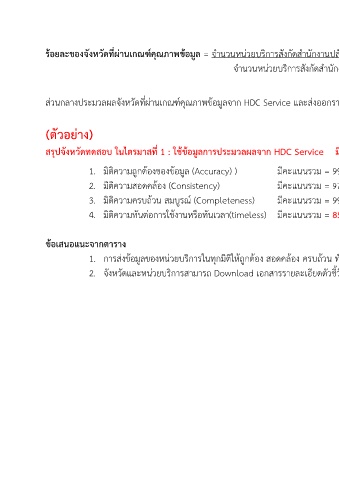 รอยละของจังหวัดทผานเกณฑคุณภาพขอมูล = จำนวนหนวยบริการสังกัดสำนักงานปลัดกระทรวงสาธารณสุขที่อยูในจังหวัด ผานเกณฑคุณภาพขอมูล x 100
