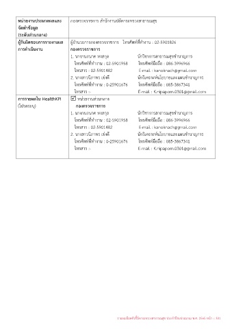 ผูรับผิดชอบการรายงานผล ผูอำนวยการกองตรวจราชการ โทรศัพทที่ทำงาน : 02-5901826