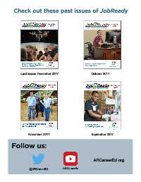 Check out these past issues of JobReady Last Issue: December 2017 October 2017 November 2017 September 2017 Follow us: ARCareerEd.org @ARCareerEd ARCareerEd