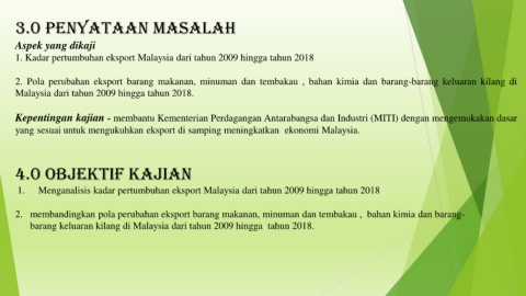 1. Menganalisis kadar pertumbuhan eksport Malaysia dari tahun 2009 hingga tahun 2018