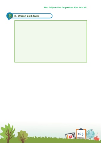 Mata Pelajaran Ilmu Pengetahuan Alam Kelas VIII H. Umpan Balik Guru 103