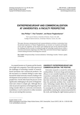 Key words: Entrepreneurship; Commercialization; Technology transfer; Venture capital;