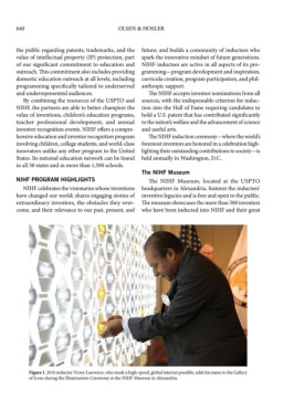 the public regarding patents, trademarks, and the future; and builds a community of inductees who technological achievements that helped stimulate picture of the progression and development