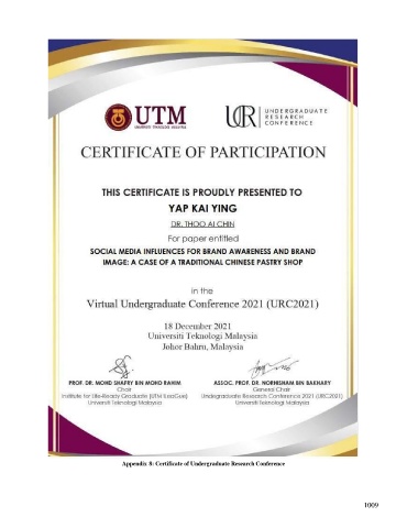 Appendix 8: Certificate of Undergraduate Research Conference 1009