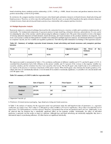 Table 4.0 : Summary of multiple regression brand elements, brand advertising and brand awareness and youngsters purchase