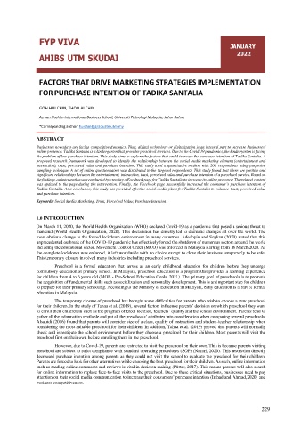 the problem of low purchase intention. This study aims to explore the factors that could increase the purchase intention of Tadika Santalia. A