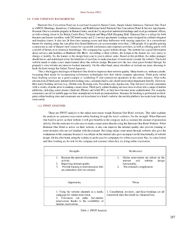 These are SWOT analysis to the online reservation trough Harmoni One Hotel websites. This table explains