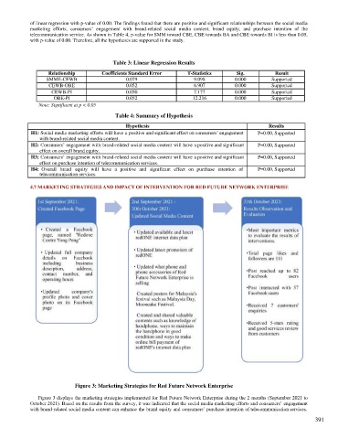 of linear regression with p-value of 0.00. The findings found that there are positive and significant relationships between the social media